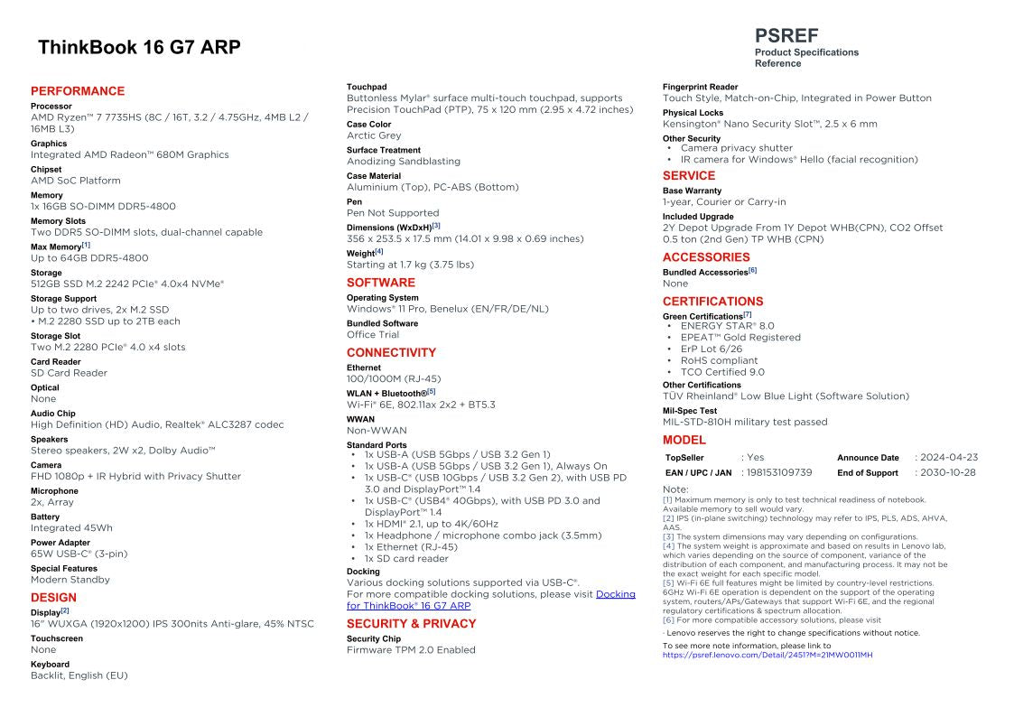 The ThinkBook 16 Gen7 supports enterprise-level service extensions, and you can purchase up to five years of Premier NBD on-site support if needed.